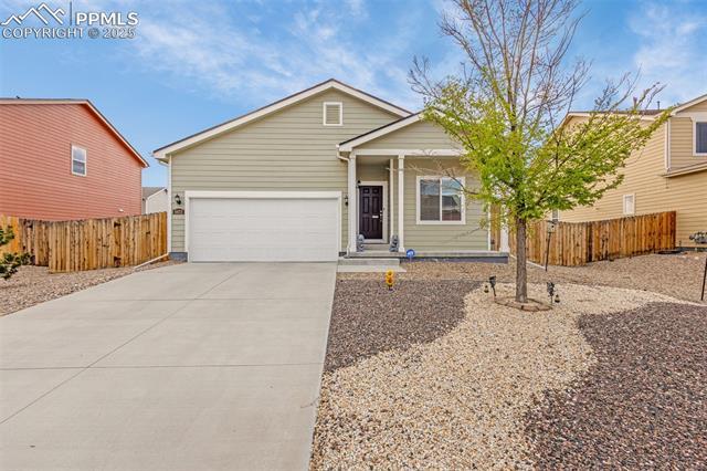 Well maintained ranch-style home in the desirable Lorson Ranch community! This charming 3-bedroom, 2-bathroom home offers comfortable, single-level living with an inviting open floor plan that’s great for both everyday living. Situated on a slab foundation, this home features low-maintenance xeriscaping in the front yard and a spacious, blank canvas in the backyard—ready for your personal touch. The bright and airy layout includes a living area that flows seamlessly into the kitchen and dining space. The primary suite offers a private retreat with an en-suite bathroom and ample closet space. Two additional bedrooms and a full bath. Conveniently located near Peterson Space Force Base, Fort Carson, the Colorado Springs Airport, and just a short drive to shopping and everyday amenities..
